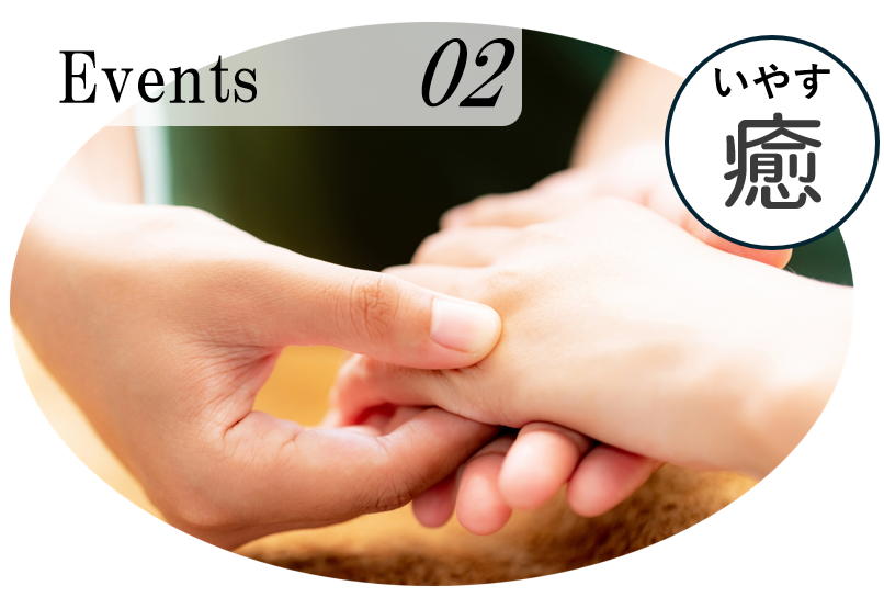 ボランティアの方による「ハンドマッサージ」。手のひらには健康のツボがいっぱい。癒しのひと時をお楽しみください。(ボランティアイベントは不定期です)