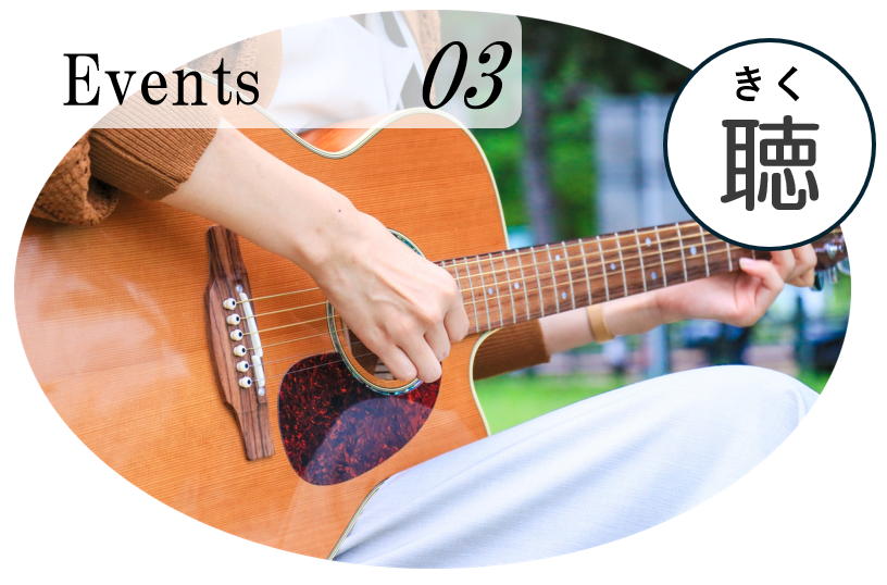 ボランティアの方による「演奏会」。ギターやバイオリン、ウクレレなど、生演奏で至福の時間をご堪能ください。(ボランティアイベントは不定期です)